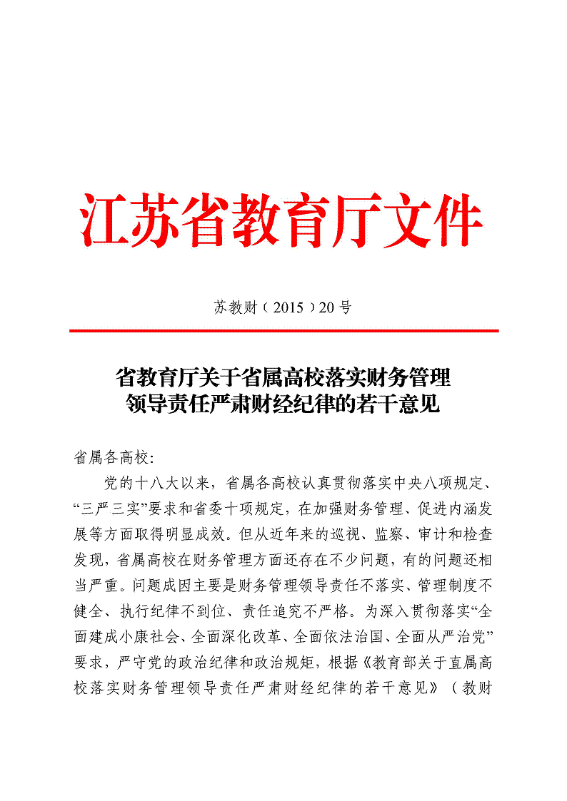 省教育厅关于省属高校落实财务管理领导责任严肃财经纪律的若干意见